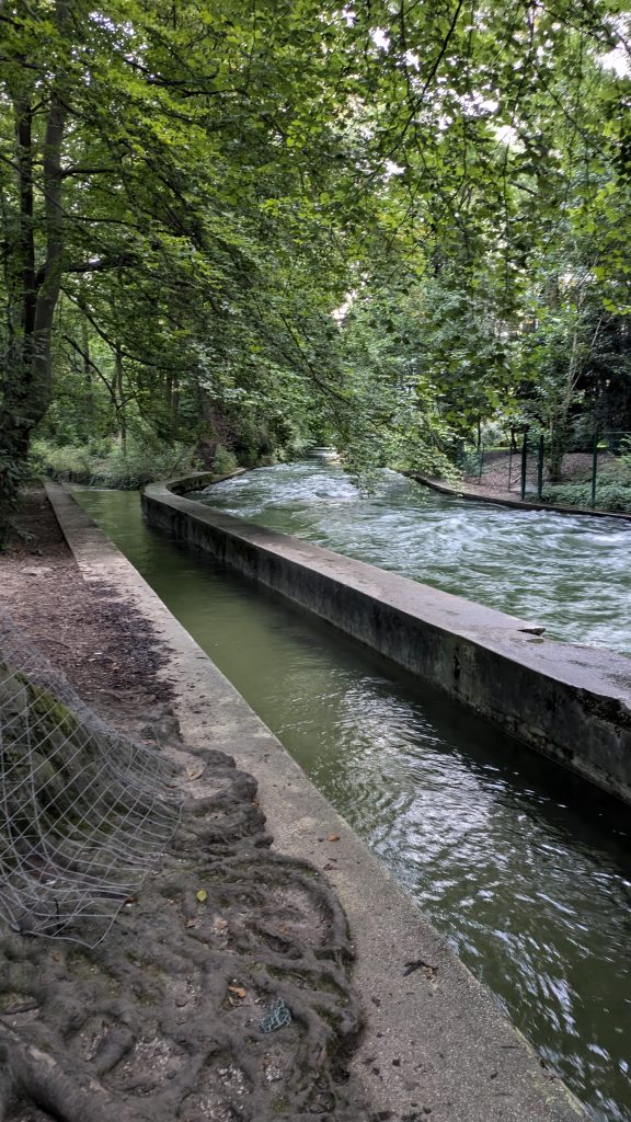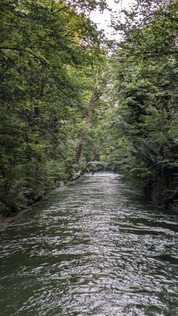Auf meinem Weg dorthin kam ich zunächst an der Dianabadschwelle vorbei und konnte einen ersten Blick auf ein paar mutige Surfer werfen. Diese ist jedoch nicht so gut zugänglich und einsehbar wie die Eisbachwelle.