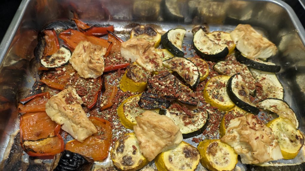 Alternativ könnt ihr evtl. 25 Min. Umluft mit 180 – 200 Grad versuchen. Das hängt vom Ofen ab. Fertig ist es, wenn das Gemüse eine leichte Bräune hat. Durch das Grillen im Backofen entsteht ein köstliches Aroma. Das Gemüse entwickelt dabei einen rauchigen Geschmack und behält durch die kurze Grilldauer seine Nährstoffe (steht zumindest so in der Anleitung meines Ofens).