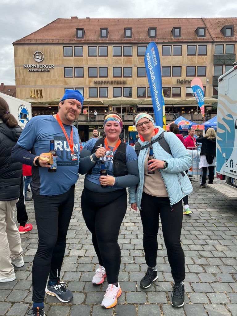Raphael (unser Sohn) und ich haben die beiden in Nürnberg in Empfang genommen. Mein Mann lag leider im Krankenhaus, sonst wäre er selbstverständlich auch mitgekommen. Nach dem Zieleinlauf haben wir gemeinsam noch ein bisschen gefeiert . Außerdem setzen wir das gemeinsame Training fort.
